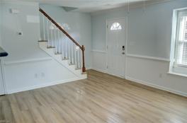 Updated 3-bedroom, 1.5-bath townhome located in the Churchland area of Portsmouth. This home features modern LVP flooring throughout and a generous eat-in kitchen with stainless steel appliances. The bright, open living room includes a wood-burning fireplace and a window seat. Upstairs, the primary bedroom features a walk-in closet with its own window, providing natural light. The full bathroom features a convenient Jack-and-Jill style, with direct access from both the primary bedroom and the hallway. Both bathrooms have updated finishes. The laundry room is set up for washer and dryer use and includes built-in shelving for additional storage. Outside, a small private yard with a patio & extra storage space; please note the backyard is not fenced. The property also includes driveway parking for two vehicles and is conveniently located right around the corner from schools. Pet-friendly—pets considered on a case-by-case basis. *Security Deposit and 1-time Tenant onboarding fee of $100*