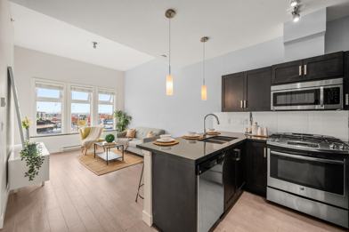 This bright and inviting top-floor 1-bedroom, 1-bathroom condo offers a smart open-concept layout with high ceilings and large windows that fill the home with natural light.