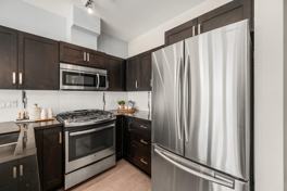 - Kitchen with granite countertops & stainless steel appliances
