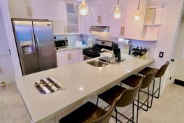 Renovated in 2023, this contemporary 2 bedroom, 2 bathroom condo is close to many eateries, retail shops, wellness centers, and entertainment venues in Sherman Oaks and Studio City (adjacent neighborhood; 0.5 miles away). The main living space features a fireplace, dining area, and balcony entrance. The kitchen features stainless steel appliances, caesarstone countertops, undercabinet lighting, and a spacious breakfast bar. The primary bedroom features an en suite bathroom, queen-size bed, Versace accent walls, room-darkening shutters, and balcony access. The secondary bedroom features a queen-size sofa bed, 55" wall-mounted Samsung TV, Yamaha soundbar with built-in subwoofer, writer's desk, and balcony access. Shared building amenities include a pool, spa, outdoor BBQ, gym, community room, and parking garage. This rental does not include access to the bedroom closets, but it does include access to clothing racks, dressers, storage units, and a safe. Up to $250 in monthly utility expenses are included. Discounts are available for leases between 3 and 6 months in duration.