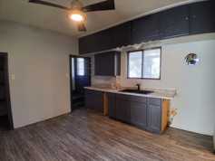 The home provides approximately 1,400 sq ft of living space, including two spacious living rooms, a functional kitchen, and an attached garage. A fenced backyard adds usable outdoor space, perfect for pets, children, or entertaining.