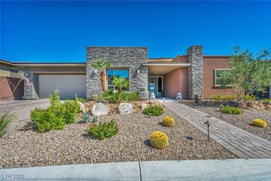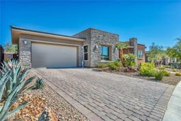 guard-gated, 55+ Regency community of Summerlin. Live in elegance, modern comfort, soaring ceilings, abundant natural light, an open-concept design that seamlessly connects living, dining, and kitchen spaces. The chef’s kitchen is complete with quartz waterfall countertops, premium stainless steel appliances, large island, and butler’s-style storage & pantry. The primary suite offers a serene escape with a spa-like ensuite featuring dual vanities, oversized, custom walk-in shower, and a generous built out closet. Outdoors, a private oasis awaits—sparkling pool, lush greenery, and a covered patio with retractable shade designed for entertaining or unwinding under the Vegas skies.