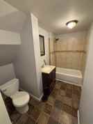 Spacious 4 bedroom lower entrance with enclosed porch and off street parking. This 4 bedroom apartment boasts of 9 foot ceilings in the kitchen and living room including vinyl flooring throughout. All bedrooms are upstairs come and see move in ready apply now.