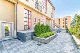 Stunning two-storey loft featuring an exposed brick accent wall and dramatic 17-foot ceilings. This beautifully designed and truly unique space offers a spacious bedroom plus den, a full ensuite bathroom upstairs, a convenient main-floor powder room, and two private balconies. Enjoy the rare convenience of a main-floor walkout—no elevator required—along with a generously sized parking space.