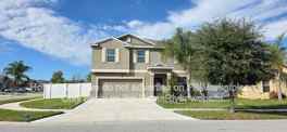 Coming Soon Available in March! 4-bedroom, 2.5-bath home with a flex room and fenced backyard this spacious two-story single-family residence sits on a corner lot and offers a thoughtful layout with plenty of room for both everyday living and entertaining. The first floor features an open-concept design with a kitchen complete with stainless steel appliances and a center island overlooking the large dining area and family room, creating a seamless flow for hosting friends and family, along with a convenient half bath. A versatile flex room provides the perfect space for a home office, library, or additional storage. Upstairs, youll find four carpeted bedrooms, including a generously sized primary suite with dual sinks, a walk-in shower, and a walk-in closet, plus a cozy loft ideal for relaxing or game nights and a centrally located laundry room with washer and dryer. Tile flooring accents the main living areas and wet spaces, while the fenced backyard features a 12x24 covered and screened lanai for outdoor enjoyment. Additional highlights include extended pavers in the driveway, shelving in the two-car garage and laundry room, and a pet-friendly policy, making this home both functional and inviting.
