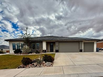 3-BR+office/2-BA with 3-car garage in Sage Canyon is on corner lot and boasts a large open floor plan, stainless steel Frigidaire appliances, fully covered back patio, separate tub and shower is master, and will accept small or large dogs with additional fees. Dixie Power and Desert Hills Boundaries. Available for late January move in. This beautiful home won't last long!
