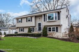 Located in the Pine Lake Park section of Toms River, this spacious and well-maintained bi-level offers over 2,100 square feet of living space with 5 bedrooms, 2 full baths, a one-car garage, and an additional den or office. The upper level features hardwood floors and a dining area that opens to a deck overlooking a fenced yard with a built-in pool and shed, while the lower level includes a large family room with new carpeting and a cozy wood-burning stove. The kitchen is equipped with all brand-new appliances, and the home has been updated over the years with a newer roof, windows, boiler, and water heater. Situated on a beautifully landscaped corner lot with underground sprinklers in the front and ample driveway parking, this home offers both comfort and convenience. Ideally located just minutes from beaches, restaurants, and shopping, this rental is ready for immediate enjoyment of the Jersey Shore lifestyle.