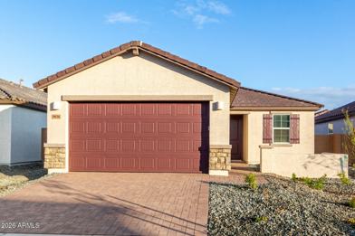 Be the first to live in this brand-new Bisbee model in Western Garden! This modern 3-bed, 2-bath offers an open, airy layout with mocha cabinets, white marble countertops, an eat-in kitchen plus breakfast bar, pantry, and all stainless-steel Frigidaire appliances-including a gas stove. Washer and dryer are also included for easy move-in. The primary suite features a spacious walk-in closet and a beautifully upgraded bath with a large walk-in shower and dual sinks. Enjoy the privacy of a split floorplan, EV-ready garage, and endless hot water, thanks to the tankless gas heater. Gorgeous mountain views complete the setting! Western Garden residents get access to top-notch amenities: community pool, pickleball courts, playgrounds, and more. You're just minutes from State Farm Stadium, Westgate Entertainment District, Wildlife World Zoo, and a variety of local attractions. A fantastic blend of comfort, convenience, and lifestyle! Turf, pavers & desert landscaping to be added in the backyard. Tenant may need to cooperate with landscapers after move-in.
