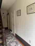 With a well-designed layout, the living room features hardwood flooring and an inviting decorative brick wall, ensuring a cozy atmosphere. The modern kitchen is equipped with wood cabinetry and black appliances, while the separate dining area makes entertaining a breeze. For relaxation, retreat to the updated bathroom featuring stylish tile flooring.