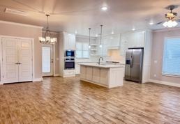 Piedmont lease listing with 4 bedrooms, 2.5 baths, bonus room, and 2-car garage. Open kitchen with ceiling-height cabinetry, large island, and quartz countertops opens to living area with gas log fireplace. Owner's suite features double vanities and walk-in shower. Covered front porch and rear patio, mudroom, Wi-Fi irrigation, security system, tankless water heater, and garage opener.