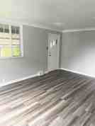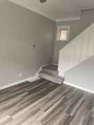 painted in grey tones , Grey wood style flooring, Big fully equipped kitchen Including washer and dryer!