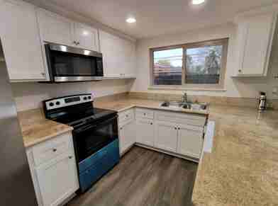 Beautifully remodeled 2 bedroom, 1.5 bath condo with new laminate flooring, carpet and baseboards. New paint, light fixtures and hardware throughout. Spacious kitchen with new stainless steel and black dishwasher, stove range & microwave. Very welcoming, fresh and contemporary design. Large primary bedroom suite with 2 closets, one being a walk in closet with a Jack & Jill bathroom. Roomy patio, large enough for patio furniture. Per HOA, grills and barbecuing of any kind is prohibited on the balconies or patios but you are welcome to barbecue and grill at the pool area.