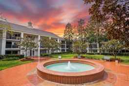 Unit 239 is a thoughtfully designed home boasting light-filled interiors, modern updates in many similar units (such as remodeled kitchens with premium appliances), and peaceful views of the courtyard's tranquil fountain and greenery.