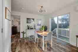 Outdoors, enjoy your own private oasis, complete with a hardscaped backyard with outdoor furniture and a storage shed included, as well as a grass-covered front yard, perfect for letting the pets stretch their legs. The property also includes the added convenience of off-street parking in the shared gravel parking area in front.