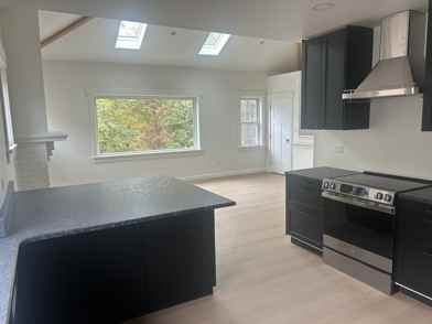 Updated 2/2 with cathedral ceilings in living room looking out to Frick Park. En-suite and walk in closet in primary bedroom. Central A/C. In unit washer/dryer. Dedicated off street parking wired for level 2 EV charging, dedicated patio out door space, chef’s kitchen with granite counters, stainless steel appliances, induction stove top, and quiet dishwasher, well insulated to minimize utilities.