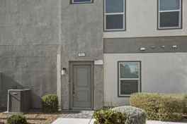 Welcome to this beautifully built 2025 townhome offering modern design, comfort, and convenience. This 2-bedroom, 2.5-bathroom residence features a smart layout with both bedrooms upstairs, each with its own private en-suite bathroom, and a convenient half bath downstairs for guests. The open-concept living area is ideal for relaxing or entertaining. The kitchen opens to the living space and features quartz countertops, custom cabinetry, stainless steel appliances, a large island, and a breakfast bar. All appliances are included. The home is located next to a grassy common area, providing an open feel, and includes a private backyard with low-maintenance artificial turf, perfect for outdoor enjoyment. Ideally situated just 5 minutes from Nellis Air Force Base and 20 minutes from the Las Vegas Strip, this townhome offers modern living with easy access to work, dining, and entertainment.