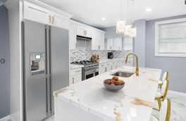 Step into a world of contemporary elegance at 1514 S 30th Street. This stunningly renovated home welcomes you with a breathtaking open-concept floor plan, anchored by expansive white marble-style porcelain tile flooring that flows seamlessly throughout the main level. The living and dining areas are bathed in natural light, complemented by a sophisticated cool-gray palette and recessed lighting. The show-stopping chef’s kitchen features pristine white cabinetry with chic gold hardware, premium quartz countertops with a dramatic waterfall edge on the island, and a high-end stainless steel appliance suite.