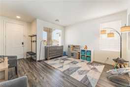 Discover this GEM in the Monaco community,located near shopping,dining,parks & community center. Spacious 4-bedroom,3-bathroom home features an open& inviting layout on the first floor, complete with NEW vinyl flooring and separate living & family rooms, a cozy fireplace, and built-in TV niche. The kitchen and dining area seamlessly flow into the family room and include a center island, pantry, tile flooring, and recessed lighting. A convenient laundry room is located just off the kitchen. Enjoy easy access to the backyard through a large sliding glass door, and take in peaceful views through the kitchen window. The private backyard offers turf and a patio ideal for soaking in Las Vegas sunsets. Upstairs features new vinyl floors throughout. Primary bedroom with ceiling fan, offers a walk in closet and large shower. LARGE second bedroom with 2 closets connects to hall bathroom. Make it yours today!