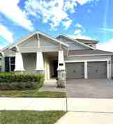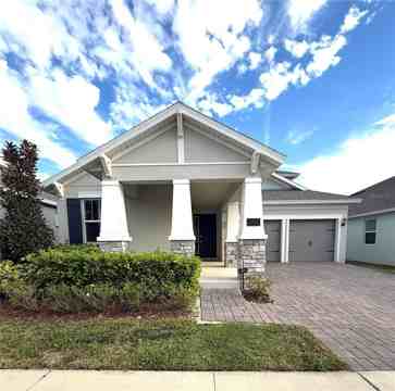 Here is a great opportunity to live in the desirable area of Hamlin with A rated schools and close to groceries stores, movie theater and Orlando Health Hospital. This amazing two-story house full of upgrades built in 2022 has 4 bedrooms and 2.5 bathrooms in the first floor and a huge loft on the second floor with walk-in closet and a full bathroom, 2 car garages with separate gates, a parkway for up to 4 cars and a charming covered porch. The 2 front bedrooms share a full bathroom across an exterior hallway. The living room and dining room come together in a large integrated environment with a beautiful vinyl flooring that includes the kitchen with a large quartz island, eye-cathcing clear beige cabinets with upgraded height, a walk-in pantry and stainless-steel appliances, including a side-by-side refrigerator and a gourmet kitchen with an oven-microwave combo, a large cooktop, a dishwasher and a wall mount range hood. The middle bedroom can also be used as a great home-office, being located right aside the half Bathroom. The master suite has a full bathroom with 2 sinks and a huge mirror. In the spacious master bedroom you will find 2 separate walk in closets and 3 huge windows that give an incredible view of the pool and the back of the house. The huge exterior area in the backyard includes a covered patio and an amazing clear tourquise salt water heated pool.