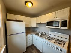 The kitchen includes modern appliances, and residents have access to on-site laundry equipment provided by the landlord.