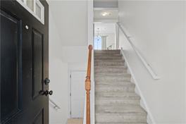 The kitchen overlooks the deck and offers tiled floors, white cabinets, and brand-new stainless steel appliances — all included! Upstairs, the primary suite includes a walk-in closet and private bathroom, while the laundry closet with washer and dryer sits conveniently in the hallway. A second bedroom with its own full bath is also on this level. Both upstairs bedrooms, as well as the staircase, are fully carpeted for your comfort. A third bedroom located on the lower-level is perfect for guests, an office, or media space.