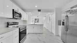 Move-in ready townhouse near FIU, completely remodeled and thoughtfully designed. This two-story home offers 2 bedrooms, 1.5 bathrooms, a private entrance, and a spacious patio ideal for relaxing or entertaining. The open-concept living area flows into a modern kitchen featuring quartz countertops and brand-new appliances, including an in-unit washer and dryer. A convenient half bathroom is located on the first floor, while both bedrooms and the full bathroom are upstairs, providing privacy and comfort. Tile flooring throughout with a marble look (No carpet).