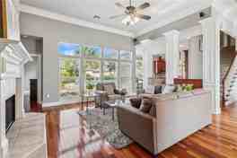 Situated in the desirable Woodlands subdivision, this home is complete with its own private pool! Open floor plan features a formal dining room and spacious living room with high ceilings, wood floors, custom built-ins and beautiful millwork throughout. The wall of windows along the living room and breakfast area provide beautiful views of the large backyard and pool while filling the living spaces with lovely natural light. Large primary suite features wood floors, dual closets, corner tub, separate walk-in shower and dual vanities. 3 Additional bedrooms downstairs. Perched upstairs is an office/work space overlooking the front of the house and a large bonus room. Premier schools located right outside the subdivision gates. Listing is also For Sale. See MLS 2536474.