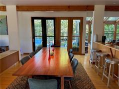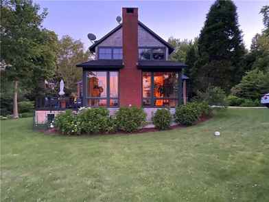 This 3000 square foot modern Jim Estes' designed New England home is steps away from Narragansett Bay with beautiful bridge views. Built in 2002, the home is designed for those seeking both privacy and a true coastal experience. With 4 bedrooms and 4.5 baths, the property easily accommodates 8 guests. The first floor includes a modern kitchen, dining area, living room, office, and sunken sitting area. The first floor opens on to several decks/porches for maximizing outdoor living. The second floor includes three bedrooms with private baths, and the lower level includes a multipurpose family area and/or bedroom with bath. In addition to porches and patios, there are well maintained and nicely landscaped outdoor spaces. The rental includes privileges at Cottrell Pier Beach (Green's Pier) which is only a short walk from the property. Walk to town, beach, ferry to Newport and parks. The property is available for the 2026 summer season with a minimum 30 day stay.