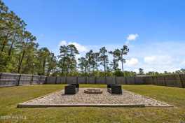 Welcome home to this inviting single-story gem located just minutes from Camp Lejeune's Sneads Ferry gate and only about five miles from the beach. Designed with a modern open-concept layout, this three-bedroom home offers an effortless flow between the kitchen, dining, and living spaces. The kitchen features a central island perfect for casual meals or entertaining, along with a separate walk-in pantry that keeps your essentials neatly tucked away. The split floorplan provides privacy, with the primary suite located off the living room and the additional two bedrooms positioned toward the front of the home. Thoughtfully designed, the home lives larger than it looks from the street-its extended depth and layout create a sense of spaciousness throughout. Step outside to a fully fenced backyard that's truly impressive in size, offering room for gatherings, play, or simply relaxing under the open sky. A generous easement between neighbors and a tree-lined backdrop along the rear of the lot add an extra layer of privacy and tranquility. Conveniently positioned about 5-10 minutes from Highway 17, this location makes commuting, beach trips, and access to local restaurants and shops a breeze. This home combines simplicity, comfort, and the best of coastal Carolina living-all with space to grow and room to breathe.