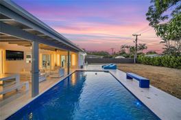 Stunning pool home on a huge corner lot! Beautifully remodeled with the perfect split floor plan, Italian porcelain floors, spacious living areas and tons of natural light. Bedrooms are all generously sized with the primary room offering French doors with access to the pool area. Modern open concept kitchen, ideal for the entertainer & complete with new cabinetry & top-of-the-line appliances, making it truly the heart of the home. Let the party spill out onto the gorgeous covered resort style patio transporting you to Santorini! Expansive lot with plenty of room for your boat, R/V or play area. Updates: impact windows, Roof from 2022, AC 2023 & updated electrical and plumbing. Located just minutes from Coral Reef Park this neighborhood provides access to excellent public / private schools.