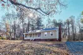 This fully renovated, single-level residence offers numerous upgrades, including a new roof, windows, gutters, HVAC system, new LVP and beautifully remodeled bathrooms. Inside, you'll find a cozy brick wood-burning fireplace, new interior doors, new fixtures and a large laundry room for added convenience. The kitchen has been enhanced with new cabinetry and granite countertops. New crown molding has been added for a refined touch. Situated on over a half-acre lot, the property offers exceptional outdoor living with a large deck extending from the side to the back, plus an inviting rocking-chair front porch perfect for relaxing. Located just minutes from I-85/40, this home provides easy access to shopping, dining, and commuting while still offering the comfort and privacy of a generous lot.