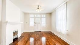 Move into this beautiful 3 bedroom-2 full bath home in the Fountainbleau neighborhood. Hard wood floors throughout living, dining and bedrooms. High ceiling, alot of windows for a light bright feel. Step into the living area with a fireplace mantle and ceiling fan and 9ft ceilings. Dining area has double windows and a beautiful candelier. Pass thru to the kitchen has 2 large closets. Kitchen has tile floors, updated cabinets, countertops, refrigerator, range/oven, dishwasher and microwave. Full bath down with laundry, washer and dryer included. Upstairs has 3 large bedrooms with great closets for storage. Primary bedroom has a faux fireplace and an extra room full of windows and a double closet. Private fenced yard, large front porch and off street parking for one vehicle.