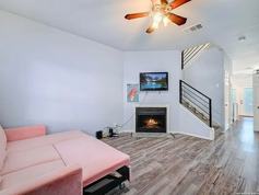 Welcome to this stylish and centrally located two-story townhome offering comfort, convenience, and thoughtful upgrades throughout. Located in the desirable North Park Townhomes subdivision, this 2-bedroom, 2.5-bath home features high ceilings, modern finishes, and a smart layout perfect for everyday living and entertaining. Step inside to discover modern laminate flooring and a cozy fireplace anchoring the living room. The updated kitchen boasts white cabinetry, sleek granite countertops, and a clean, modern aesthetic that flows into the dining area and living room. Just off the kitchen, you'll find a convenient indoor utility room and a guest half-bath. Upstairs, enjoy the privacy of two generously sized bedrooms, each with its own en-suite bathroom. One features a stunning floor-to-ceiling tiled shower with a pebble-stone floor, creating a spa-like retreat. A small open office nook upstairs offers a perfect work-from-home setup or reading space. Additional highlights include two reserved parking spaces, quaint private patio, neighborhood pool, and community center.