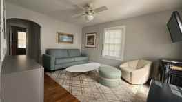 FURNISHED; This is a very cozy bungalow with hardwood floors, 2 beds and 1 bath with a fully equipped kitchen, Smart tv in living room, and bedrooms, and fenced backyard. House is located in the heart of the welcoming Dunleath Historic District in Greensboro (https www dunleath org ), across from the Sternberger Park with playground. Downtown and Moses Cone Hospital are within 1 mile, and other major hospitals within a 3 mile radius (Kindred, Wesley Long). The downtown greenway east corner is two blocks away.