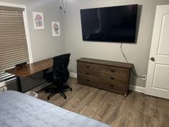 The private, lockable bedroom includes a king size bed, adjustable sit to stand desk, large dresser, full closet, and a 65 inch Smart TV. High speed FiOS 1 Gig internet is included and reliable for studying, charting, and streaming. The shared bathroom is used by only one other guest and is professionally cleaned weekly.