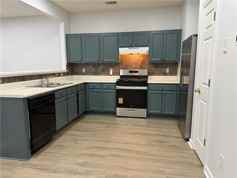 Step inside to a fully renovated kitchen featuring brand-new stainless steel appliances, including a refrigerator, range, dishwasher, and garbage disposal. The kitchen cabinets have been enhanced with a modern color, giving the space a sleek, state-of-the-art look, perfect for both everyday living and family gatherings.