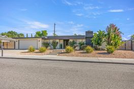 FULLY FURNISHED RENTAL OWNER PAYS POOL / YARD / LAWN CARE Welcome to your piece of paradise great for entertaining. With so many amenities you will never want to leave. This mid century modern home has been fully remodeled inside and out. The award winning backyard design boasts a state of the art pool with removable pool fence, jacuzzi, waterfall, putting green, outdoor kitchen / BBQ, bar with outdoor TV, firepit and grass lawn area. The open concept floor plan has a massive great room perfect for entertaining combined with a huge kitchen and island. This is a 3 bedroom 2 bath PLUS an outdoor detached office great for running a home business. Half of the garage has also been transformed into a home gym. The bedrooms are very large and there is a 4 car wide driveway for parking. There is also fully opening gates for small RV access on the side yard. This house has a reverse osmosis water filter system for the cleanest drinking water. This is a wonderful quiet street in a great location, you couldn’t ask for better neighbors. Kids playground etc. can be removed upon request.
