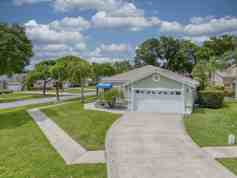 :Welcome home to your single-story home with double garage on a large corner lot in Atlantic National @ Lacuna. Live in a golf community with no membership fees, all aged community and a 24-hour manned security gate. The open floor plan features split bedrooms and a third bedroom that serves as a den/office. Light laminate flooring flows throughout, with tile in the kitchen and baths. The updated kitchen has stainless steel cabinetry and granite countertops, plus recessed lighting. Relax on the fully screened, covered patio overlooking a serene garden view.