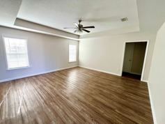 Welcome home to 2562 Tuscan Way in beautiful Valdosta, GA! This spacious and modern 4-bed, 2-bath home offers 1,702 sq. ft. of comfortable living space with a thoughtful split-bedroom design; perfect for roommates or growing families. The open living area features easy-care vinyl plank flooring and a tray ceiling, flowing seamlessly into the bright kitchen and breakfast nook. You’ll love the custom cabinets, stainless-steel appliances, and eat-at bar in the kitchen, plus French doors that open to a covered porch and private backyard-ideal for morning coffee or outdoor entertaining. The primary suite includes a walk-in closet and en-suite bath with a garden tub, separate vanities, and walk-in shower. A convenient laundry room with washer/dryer hookups and pantry space off the garage makes everyday living a breeze. Located just minutes from major highways, shopping, and dining, this home blends style, comfort, and convenience in one great address. Don’t miss your chance to make it your next rental!