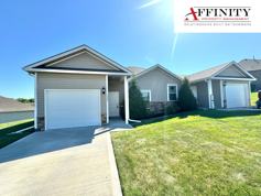 Gorgeous Greenhills, ranch style, side by side duplex. Located in the Platte County school district. 3 Bedroom, 2 bath. Open concept kitchen/living room accented by high ceilings and updated finishes. Sliding rear patio door opens to outdoor seating area. Kitchen comes complete with stainless steel fridge, electric range, dishwasher and microwave. Large primary suite with attached large walk in closet and private bath. Double vanity and walk in shower complete this spacious bath. Washer/dryer hook ups . Attached, single car, garage. Private entry. Lawncare included.