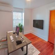 This beautifully restored, quiet apartment consists of a kitchen, a small deck off the kitchen, a bathroom, a den/office, a master bedroom, and a living room. Hardwood floors throughout the unit (kitchen & bathroom have sheet vinyl for easy cleaning). The unit has a large cedar closet for storing clothes. Enjoy a morning coffee sitting on your private deck. The den/office room allows you the possibility of easily working from home or having your own space for hobbies. There's a shared washer and dryer in the basement.