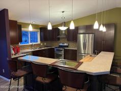 All bedrooms on the lower level. Upstairs has an open-concept kitchen, dining, and living area surrounded by large windows, offering an abundance of natural light. Outside, there's an expansive 500-square-foot deck with mountain and lake views. The owner/landlord is the licensed real estate agent in the state of Alaska. Additionally, the property includes an oversized 500-square-foot one-car garage, providing ample storage space and convenience.