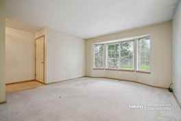 In the living area, the fireplace creates a natural gathering point that feels inviting without overpowering the room. A bay window adds visual interest while bringing in soft natural light that helps the space feel open and relaxed.
