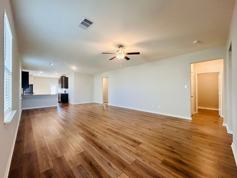 Amazing home with 4 Bed 2 Baths. Featuring open style gourmet kitchen with granite countertops, beautiful open floor plan, spacious bedrooms with walk in closets, modern style flooring. The covered patio and large backyard is perfect for your evenings and weekend gatherings. The house has fully installed window blinds, and ceiling fans in master bed room and living room as well. The house also comes with refrigerator, washer and dryer, and garage door opener.