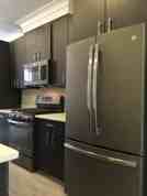 • Kitchen Features Linear Island, Contemporary Custom Cabinets, Quartz Counter Tops and Slate GE® Appliances