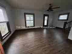 3 bedroom, 1.5 bathroom updated house, large living room, formal dining room, eat in kitchen, new flooring through out. Original wood trim, washer and dryer hook ups in basement. Enclosed front porch. Resident responsible for all utilities, lawn care and snow removal.