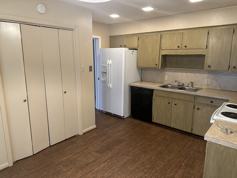 The kitchen boasts a lovely breakfast nook, and a side-by-side fridge is included for your convenience. Outside, you'll appreciate the small fenced outdoor patio - perfect for relaxing - along with a closed-in storage unit and covered private parking at the back.