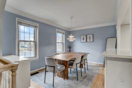 Main Level: A beautifully renovated kitchen and bright living and dining area. Walk out to a private, paved patio from the living room. Light ivory hardwood floors throughout.