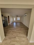 This one bedroom home is located in an age restricted 55 plus community where you have clubs to join, trips to go on, golf, swimming and more ! It has a covered parking space, a screened in lanai to enjoy the morning fresh air. The laundry room has storage cabinets, the galley style kitchen has bee redone with cabinets, granite and stainless appliances. There is a living and dining area plus a bonus room for hobbies or an office. The hallway has a linen closet and the bath has been updates also. Your bedroom has a built in in closet and remote ceiling fan to cool you off at night. The home is located near the shopping plaza and north clubhouse so you can walk or ride a bike if you'd like. Unfurnished and ready for you to move in.