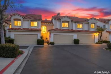 Turnkey townhome, beautifully updated, and blessed with an ideal location just steps from the community pool and a short stroll to RSM Lake and shopping and dining! Step inside the double door entry and soak in the soaring two story vaulted ceilings, the light filled interior, wood look tile floors, new carpet, custom lighting, upgraded ceiling fan, and a freshly painted neutral palette all setting the stage for an ideal living environment. The open floor plan includes a spacious living area, the perfect gathering space around the cozy brick fireplace, and is open to the dining area with direct access through the sliding doors to the patio, creating a superb indoor-outdoor living space. The sparkling updated kitchen is blessed with sleek Quartz countertops, timeless white Shaker cabinetry, updated hardware and fixtures, recessed lighting, stainless steel appliances, and a prized breakfast bar. The main level also includes a convenient updated powder room. Travel upstairs to the bedroom level where you will find a spacious primary bedroom with vaulted ceilings, new carpet, recessed lighting, custom light fixture, and two closets with mirrored closet doors. The secondary bedroom also boasts vaulted ceilings and mirrored closet doors. The full bathroom on the bedroom level has been beautifully updated with a Quartz topped updated vanity, updated faucets and fixtures, white shaker cabinetry, and a shower enclosure with oval soaking tub. The spacious outdoor enclosed and tiled patio is the perfect space for relaxing and BBQing with friends and family. A highly prized direct access 2 car garage with epoxy flooring and full-size washer and dryer included completes this floor plan. You will adore this prime location superbly situated just steps from the community pool and just a short walk to Rancho Santa Margarita Lake, Trabuco Mesa Park with tennis courts, tot lot, and playing fields, and the Mercado Del Lago Shopping Center with Ace Hardware, Ralphs Groceries, Banking, Starbucks and the picturesque plaza along the lake front with numerous dining, shopping, and service venues. Numerous walking paths around the lake and close to hiking and biking trails throughout O’Neill Regional Park, Live Oak Canyon, and Rose Canyon. Easy toll road access.